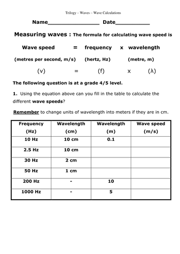 At what speed will this wave travel? Where it comes from, how to solve, speed of a wave. Variables, units, and symbols sample problem 1) a wave has frequency of 50 hz and a wavelength of 10 m. The formula we are going to practice today is the wave speed equation: Two waves on identical strings have frequencies in a ratio of 2 to 1.